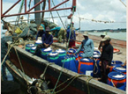 | ミャンマーの海 | 網上げ | 荷揚げ | 加工風景 |